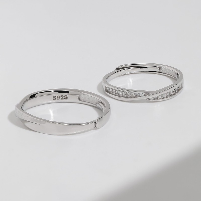 Meissa Adjustable Promise Rings for Couples Sterling Silver Matching Wedding Bands Interwined Couples Ring Sets for Men and Women Adjustable Twist Engagement Statement Promise Ring, 2.9mm Width