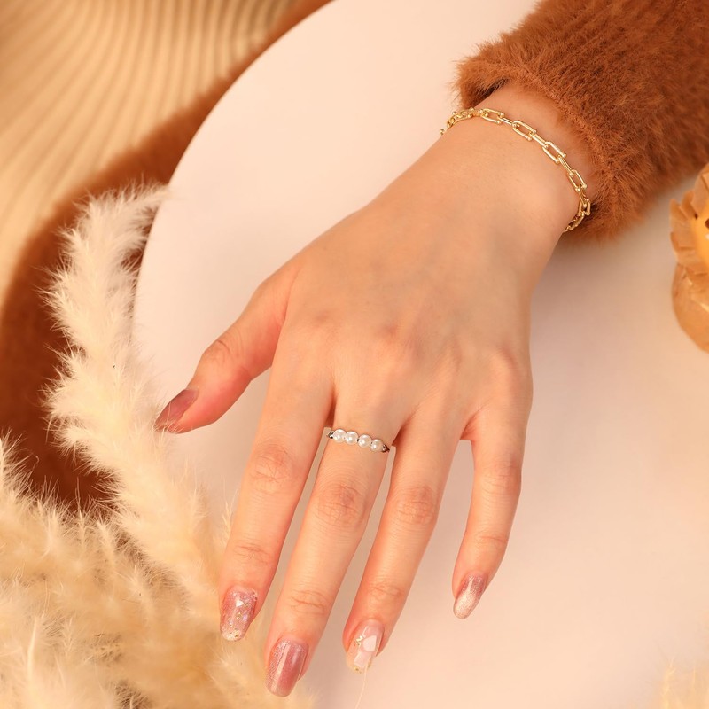 Meissa Angst Fidget Ring für Frauen 925 Sterling Silber Spinning Ring Gold Ring Angst relieving Fidget Ring Stressabbau Heilung Ring Perle Perle Ring (Silber)