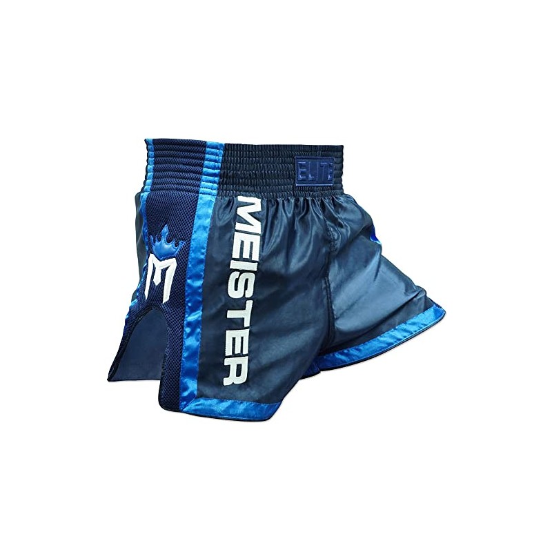 Meister ELITE Muay Thai Shorts - Fully Elasticated Waist w/Mesh - Navy/Blue - Small (30-31)