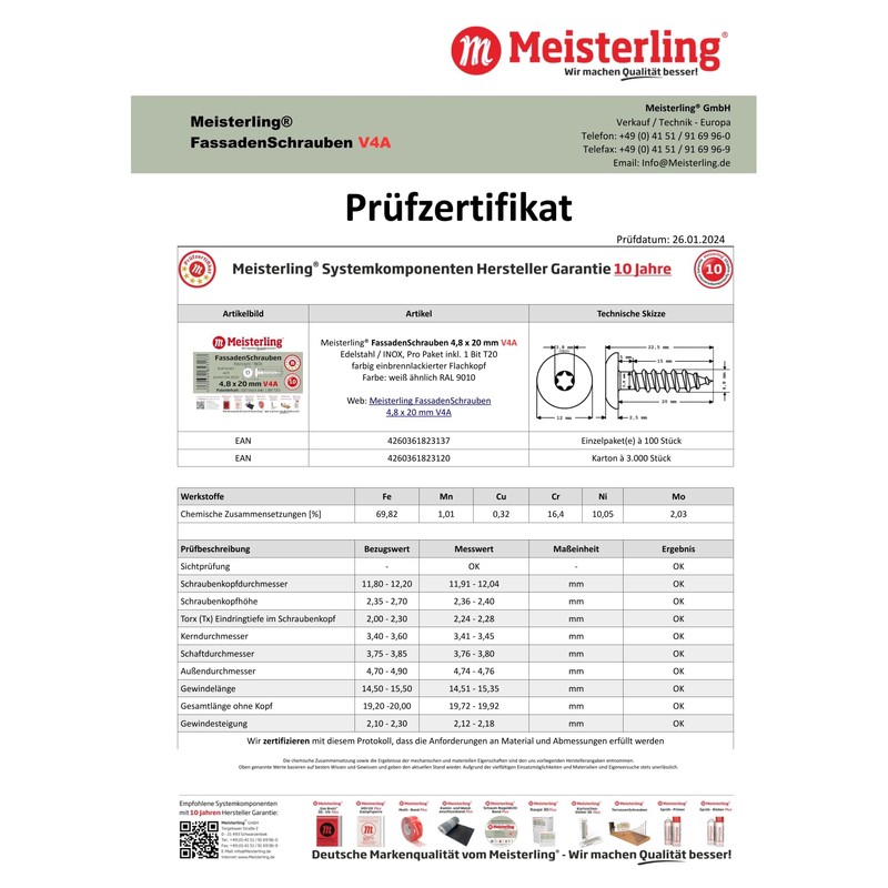 Meisterling facade screws V4A stainless steel / INOX hardened.