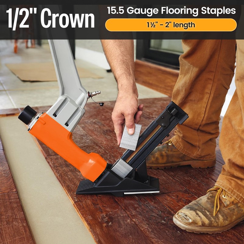 - [Compatible Tools] Compatible with most 15-1/2" gauge flooring staplers including: meite MFS50(ASIN: B015U3B258); Bostitch MIIIFS, BTFP12569; Dewalt DWFP12569; Numax SFL618; 3PLUS HFSNSP; Freeman PFL618BR, PFL618C; Metabo N5010AB; Senco SHFS200; Valu-Air 9800RC; Banks 64268; Estwing EFL50Q