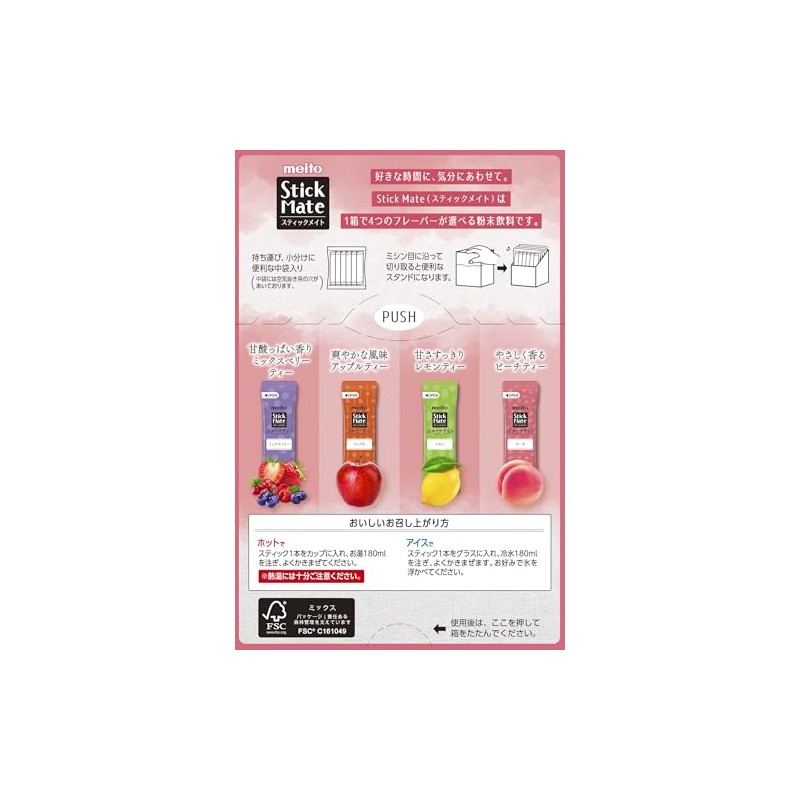 Meito Stick Mate Fruit Tea with 4 Types of Choice, Pack of 24