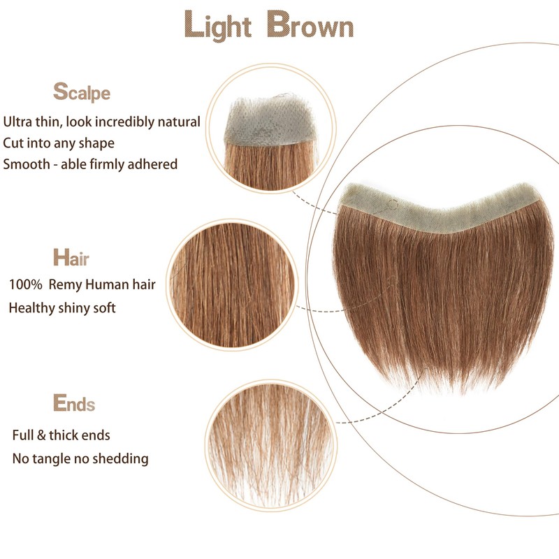 Meiverah Frontal Hairpiece for Men Light Brown Hair Extension Hairline Loss Straight Tape in Human Hair Toppers Replacement Toupee (0.78"x6.3", 6", Light Brown)