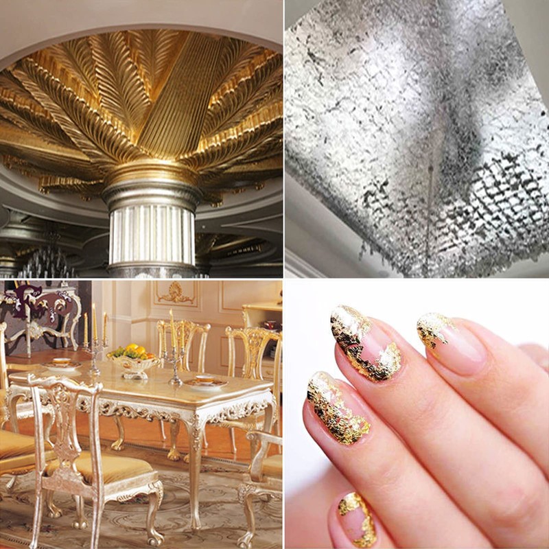 - Gold foil is mainly composed of copper and zinc. The bright color is not easy to fade and oxidize, making it suitable for some amazing arts and crafts, and can create a shiny texture effect to make your furniture and crafts more beautiful.