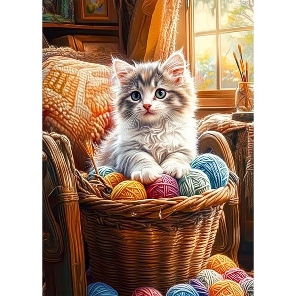 MEIYUDA Cat Diamond Painting Kits for Adults, 5D DIY Relax Cat Diamond Art Kits, House Diamond Art Crystal Picture Round Full Drill Gem Art for Home Wall Decor 30x40cm