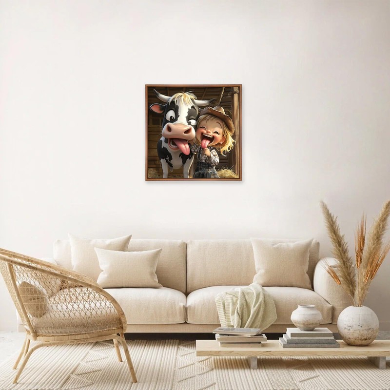 MEIYUDA Cow Diamond Painting Kits for Adults, 5D Cute Cow Diamond Painting Art, DIY Cartoon Cow Round Full Drill Gem Art Crafts for Home Wall Decor Presents 30x30cm