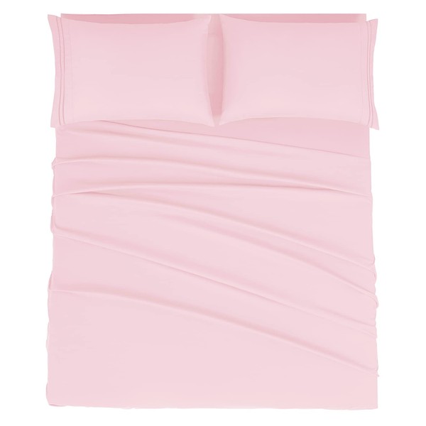 Mejoroom Full Size Sheet Set - Soft Microfiber Bed Sheets - Deep Pocket Fitted Sheet, Breathable, Wrinkle & Fade Resistant - 4 Piece (Full, Blush Pink)
