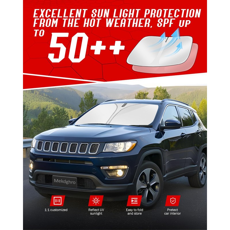 Mekdghro Custom Fit Windshield Sun Shade for Jeep Compass 2007-2017, Foldable, Easy to Install & Store, Full Coverage, 210T Reflective Fabric, Blocks 99% of UV Rays