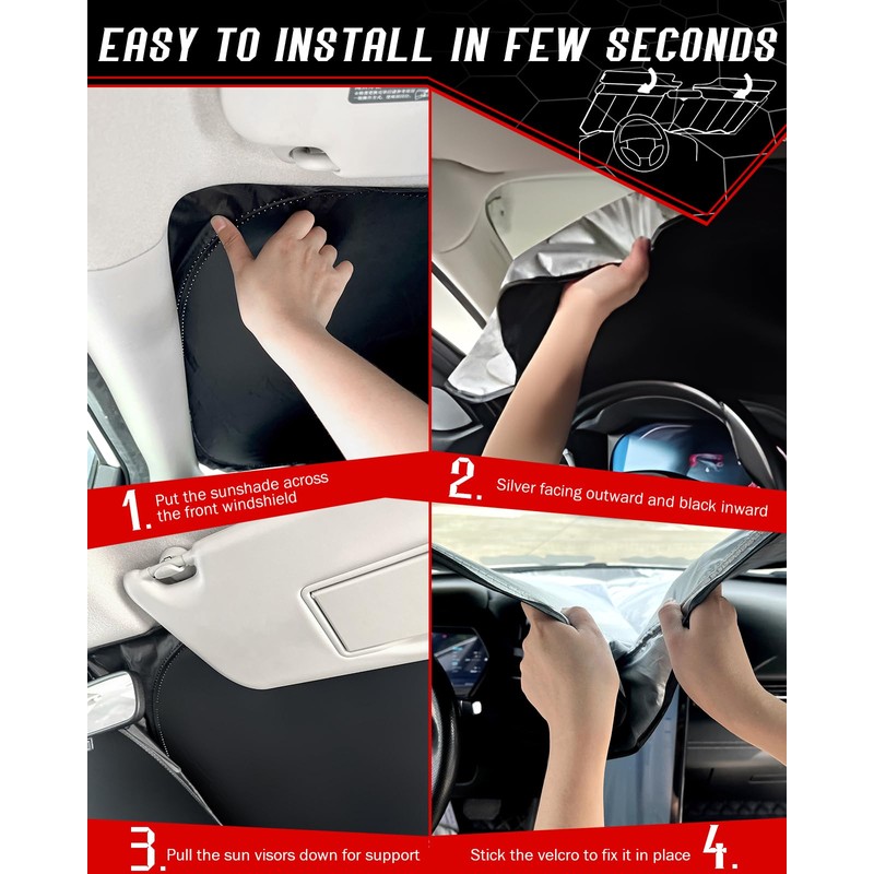 - Easy to Install and Store: Effortlessly set up and take down the sun shade in seconds, making it convenient for daily use. Its foldable design allows for compact storage when not in use, keeping your car organized and clutter-free.