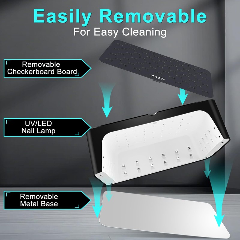 • Upgraded Design: The uv nail light top features a detachable checkered block with magnetic absorption, perfect for creating nail art without your tools tipping over. Additionally, the top block can be removed to place a hand rest, allowing you to enjoy a comfortable and relaxing nail experience, reducing hand and wrist fatigue. The detachable base also makes cleaning easy, saving you from unnecessary hassle.