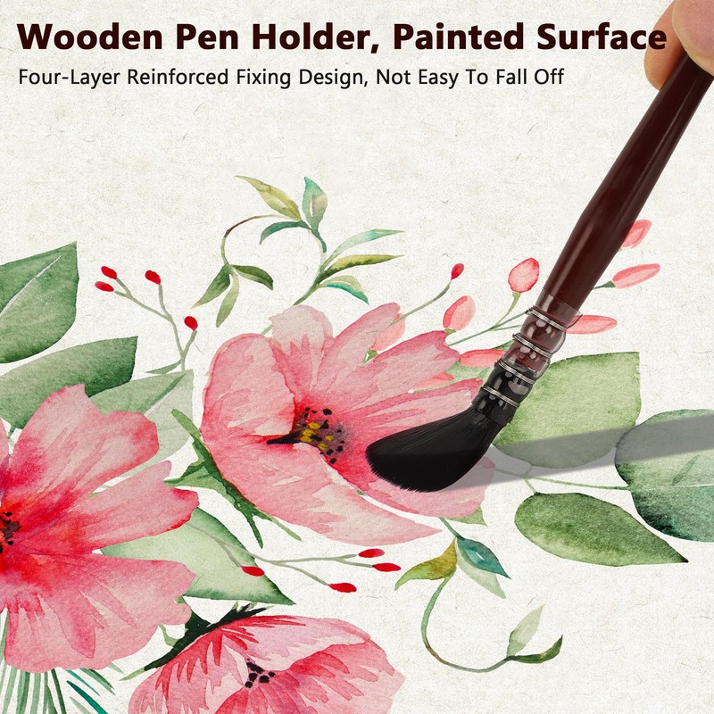 - 【Metal Ferrule】The ferrule of this watercolour brush is nickel-plated brass which helps to prevent corrosion and enables easy cleaning. The polished birch wooden handle will not be bent or broken even with long-term use.