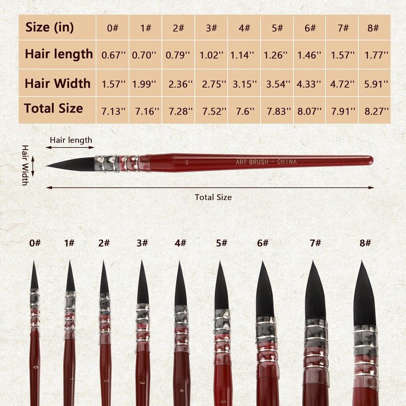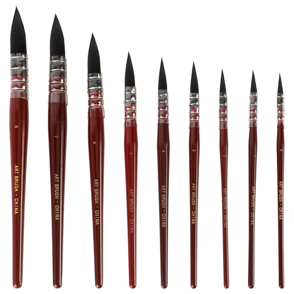 - 【9PCS Multiple Sizes】This professional paint brush set features a wide variety of sizes (model 0, 1, 2, 3, 4, 5, 6, 7, 8) to meet different painting and creating needs, from large even washes to fine lines and details.