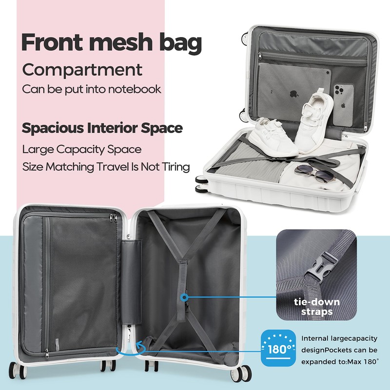 - PP Hardside Luggage Set: The shell is made of 100% polypropylene material, which is lighter and stronger than ABS luggage, and effectively resists external shocks. The dual design of wavy glossy surface and frosted surface makes this suitcase full of fashion sense.