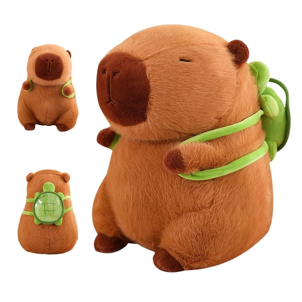 - Cuddly toy Capybara 23 cm: this cute cuddly toy Capybara with a size of 23 cm and thus offers optimal cuddly comfort. This Capybara plush toy has an independently removable green turtle backpack on the back. Capybara cuddly toys are very cute and look interesting