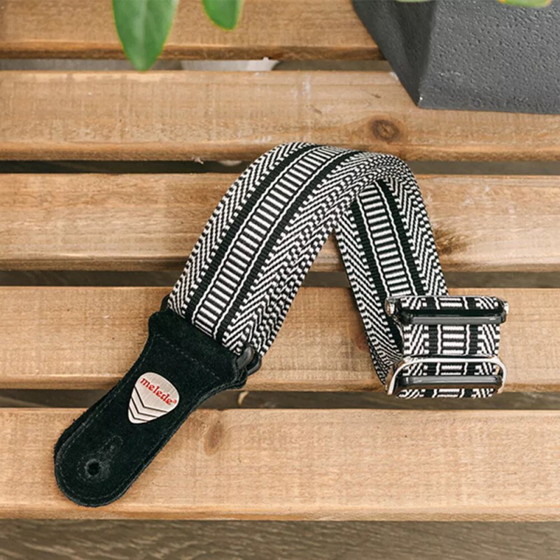 Melede Bulldog - Guitar Strap Black & White with Fast Adjustable Length from 38" to 61"