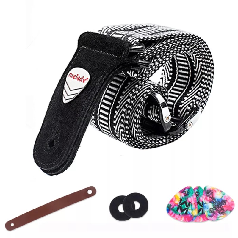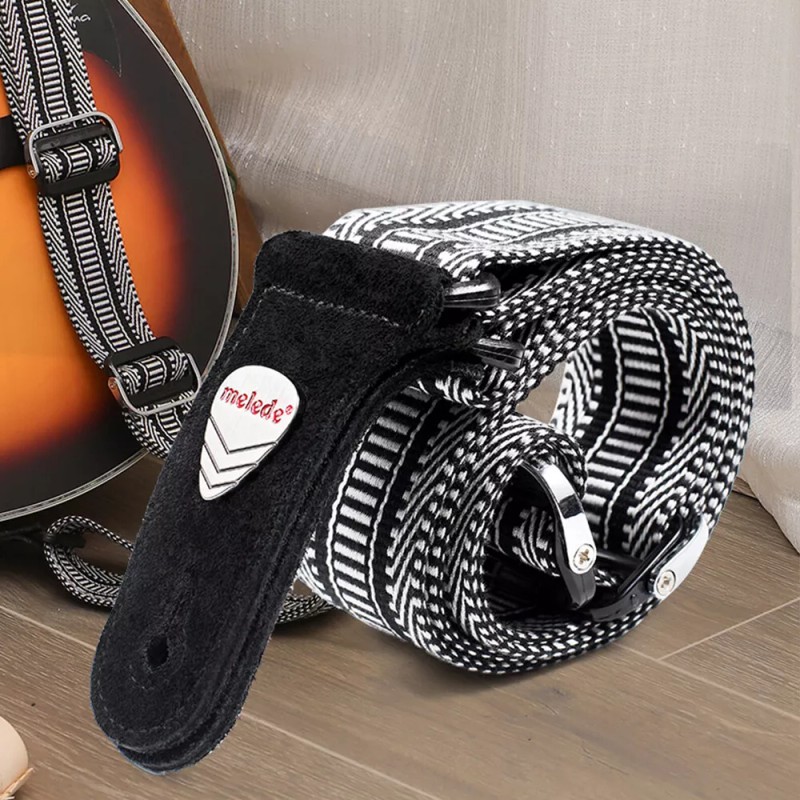 Melede Pro Guitar Strap enhances your performance by making adjustments quick and effortless. Whether you're on stage or in a studio, this strap's patented buckle allows for one-handed length adjustments, saving time and effort, much like having a helpful bulldog by your side. Experience the comfort of high-quality materials designed for both kids and professionals.