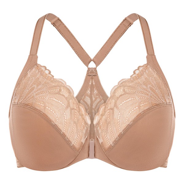 MELENECA Women's Racerback Front Closure Full Coverage Unlined Plus Size Underwire Bra Cappuccino 46DD