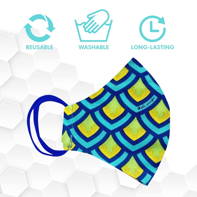 Meli Wraps - Reusable Cotton Face Masks, Washable Face Mask with Adjustable Ear Loops, Large Face Mask for Men, Women and Children, With Scales Mask Design