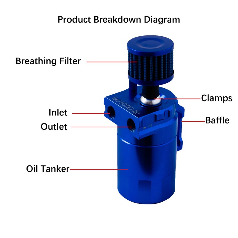 - [Baffle design] The oil catch can adopts replaceable baffle structure and adds appropriate amount of stainless steel filter beads, which can efficiently separate oil-water mixture and impurity particles and inhibit the formation of carbon deposits. It effectively protects the intake manifold, valve guides, combustion chamber and other key parts, which guarantees the stability of power output, significantly reduces mechanical wear and prolongs the engine's service life.