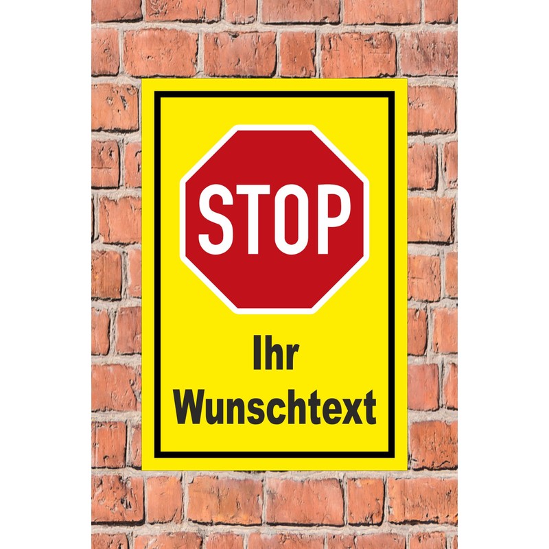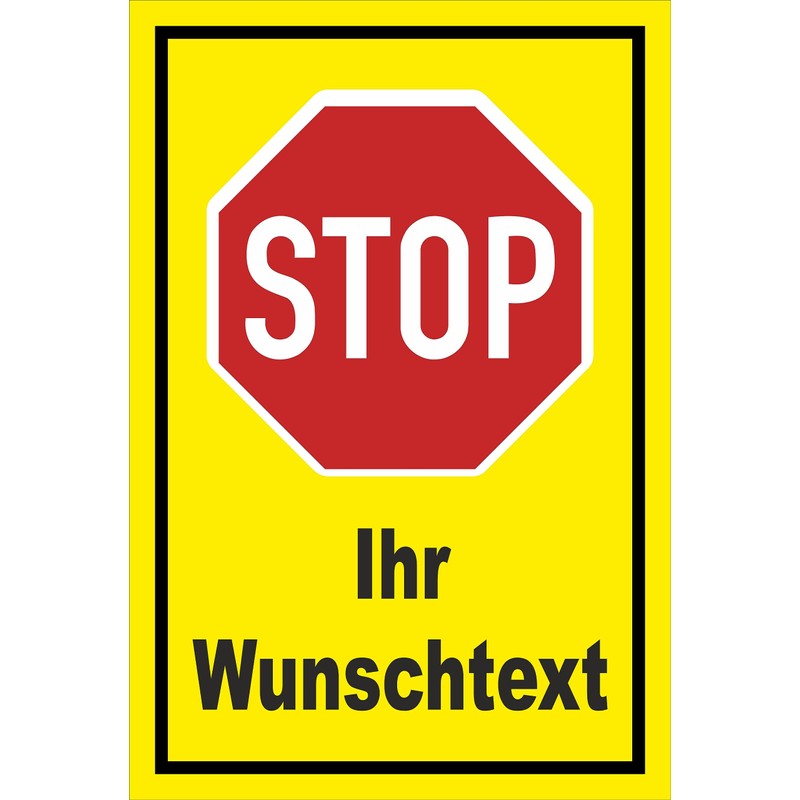 - Text: Stop – Stop – with your own desired text – can be personalised via the button "Customise now" – Traffic signs – Regulation sign as picture board according to §41 paragraph 1 of the road traffic regulations - StVO