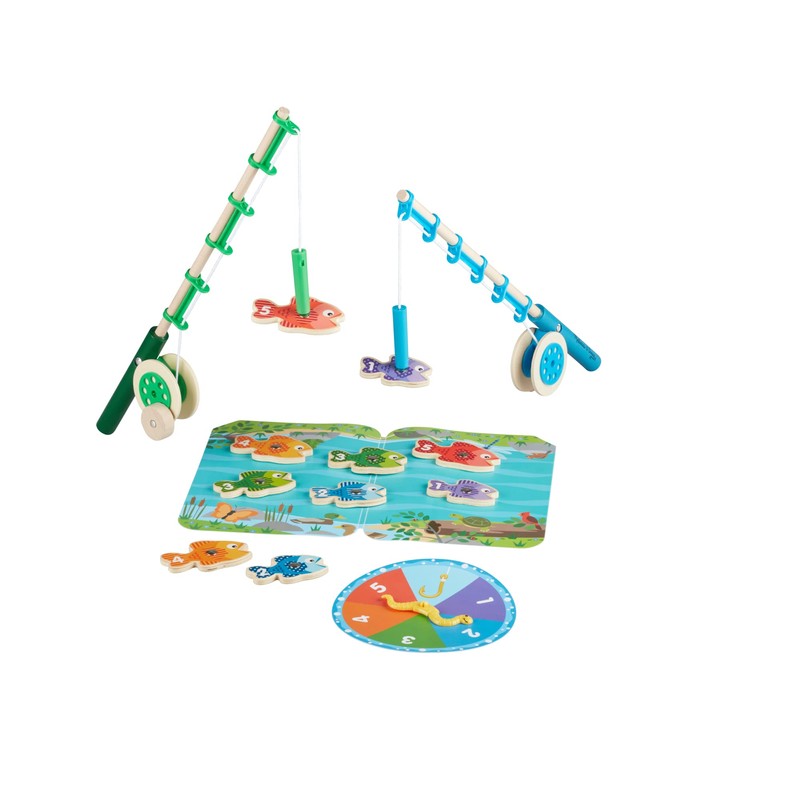Catch some laughs and learning with this wooden magnetic play set--complete with working wind-up reel! The 10 magnetic fish are numbered and patterned to enrich matching, sorting, and counting activities, and two wooden rods make collecting them a blast! Kids can use the spinner to play as a game, or just have fun collecting the pieces over and over again. Either way, there's plenty of excitement in this sea! The Magnetic Wooden Fishing Game is a creative way to encourage hand-eye coordination and fine motor development. It’s challenging enough to keep kids 3 and older entertained, yet easy enough to promote confidence and self-esteem. There are lots of ways to play and learn about counting, colors, numbers, the concepts of big and small, and more. Quality craftsmanship and sturdy wooden construction ensures this is a game that will be enjoyed for years to come. The Melissa & Doug Catch & Count Wooden Fishing Game makes a great gift for kids 3 to 5 years of age. This set plays well with the Melissa & Doug Under the Sea Floor Puzzle. For more than 30 years, Melissa & Doug has created beautifully designed imagination- and creativity-sparking products that NBC News called “the gold standard in early childhood play.” Today, Melissa & Doug is proudly partnering with the American Academy of Pediatrics to foster early brain development and help children build important life skills through play.