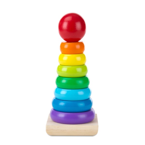 - EDUCATIONAL CLASSIC STACKER TODDLER TOY: The Melissa & Doug Rainbow Stacker Classic Toy features 8 smooth, easy-to-grasp wooden pieces to stack on a solid-wood rocking base.