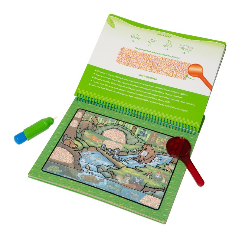 No-mess painting for kids! This exciting paint-with-water and seek-and-find activity book includes eight reusable pages, a refillable water pen, and red lens. Simply use the pen to color in each animal scene - details and vibrant color appear with every stroke! Let the page dry to erase the pictures and color it in again and again. Reveal hidden pictures with the water pen, then use the red lens to explore even more in the detailed scenes! The chunky-sized water pen and red lens are easy for kids to hold and store neatly right in the front cover, so Water Wow! books make ideal travel activity books and travel toys for kids. The Melissa & Doug traveling coloring books are designed to be both educational and entertaining. They help to promote fine motor skills, early writing/reading skills, and visual discrimination. The Melissa & Doug On the Go Water Wow! Animal Antics Deluxe Activity Pad is a delightful and educational gift for kids ages 3 to 7. Add a Melissa & Doug Reusable Sticker Pad to round out the hands-on and screen-free play experience. For more than 30 years, Melissa & Doug has created beautifully designed imagination- and creativity-sparking products that NBC News called “the gold standard in early childhood play.” Today, Melissa & Doug is proudly partnering with the American Academy of Pediatrics to foster early brain development and help children build important life skills through play.