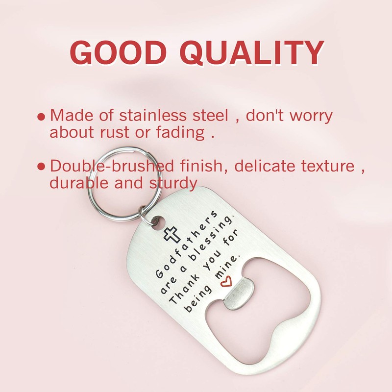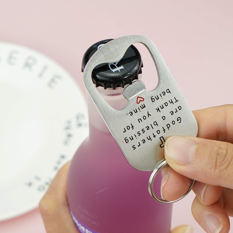 - Men gifts for Christmas - A Stainless Steel Bottle Opener stamped with "Godfathers are a blessing. Thank you for being mine.