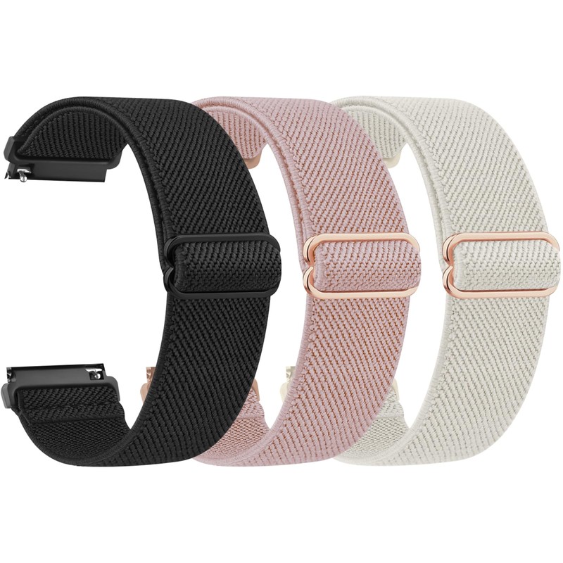 Meliya 18mm Watch Bands Quick Release Replacement Wristband, 3 Pack Solo Loop Adjustable Elastic Nylon Straps for Men Women, Black+Pink+Starlight