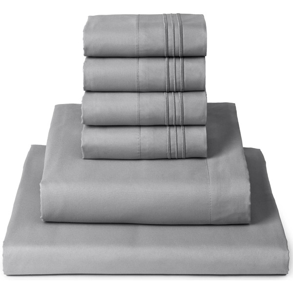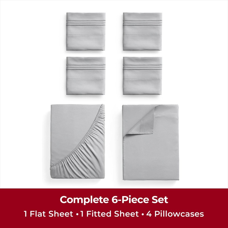 Mellanni Full Sheet Set - 6-Piece Iconic Collection Bedding, (Including 4 Pillowcases), 16-Inch Deep Pocket, Easy Care, Extra Soft, Cooling Sheets, Brushed Microfiber - Light Gray