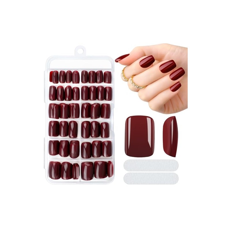 MELLIEX 240 Stück Press on Nails Kurz Quadratische Weinrot Nägel Zum Aufkleben 10 Größen Acryl Falsche Nägel Tips Set Vollständige Abdeckung Künstliche Fingernägel