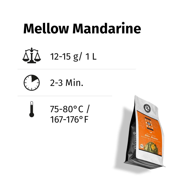 "Mellow Mandarin" Green Tea Loose Organic with Mandarin Grapefruit Flavour, 100 g Flavoured Tea Mix (approx. 40 Cups) alveus