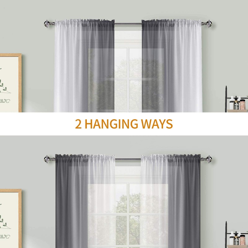 Melodieux Grey Ombre Sheer Curtains Chiffon Grey Gradient Rod Pocket Voiles, ...