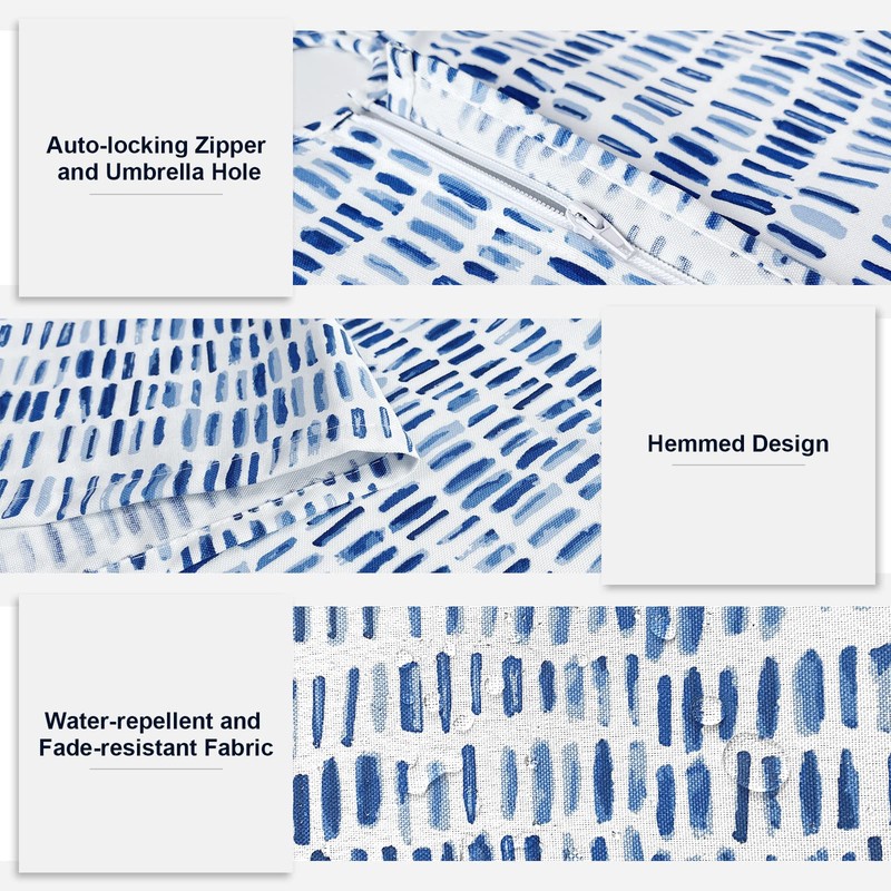 - The convenient umbrella zipper allows you to easily install and remove your umbrella without removing the tablecloth and is the perfect way to enhance your outdoor dining experience