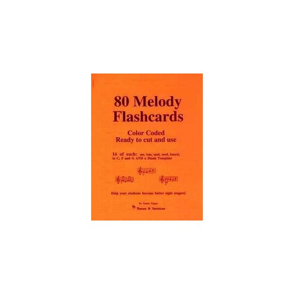 By Denise Gagne. 80 large sight singing cards (each 4-1/2" x 11") on heavy cardstock. (Cards come printed 2 on a page; simply cut in half to use.) Sequentially presented for grades 1 to 5; color-coded and numbered for easy reference. Includes 16 cards each of: S-M, L-S-M, S-M-D, M-R-D, L-S-M-R-D in C, F, and G. Also includes many singing and listening activities, and a blank template to make your own melody patterns. For grade 1 to 5. Activities suggested: Disappearing Flash Cards, Which Flash Card Did I Sing, The Price is Right, Melody Dictation, Melody Canons, Melodies with an Ostinato, Flash Card Turnover, Name That Tune. Also use for melody and rhythm reading practice, sight reading practice on melody instruments, or for choral warmups.