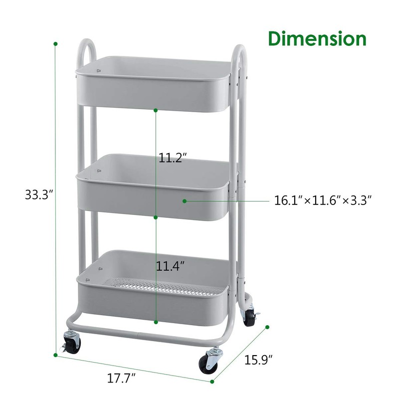 - Strong Structure: The storage cart is well-constructed, sturdy, durable to use for many years. It is made of high quality carbon steel and has the feature of anti-rust, waterproof, scratch-resistant. Per shelf has weight capacity up to 22 lbs