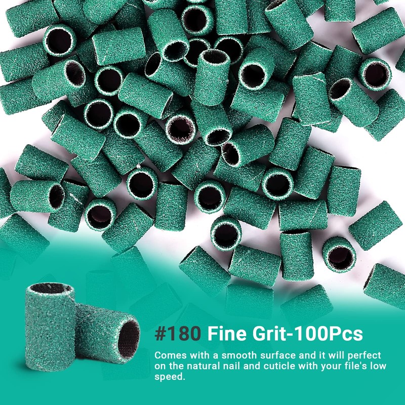 - 100 Pcs #180 Grit File: MelodySusie sanding bands are designed with durable material. 180# comes with a smooth surface and it will perfect on the natural nail and cuticle with your file's low speed.