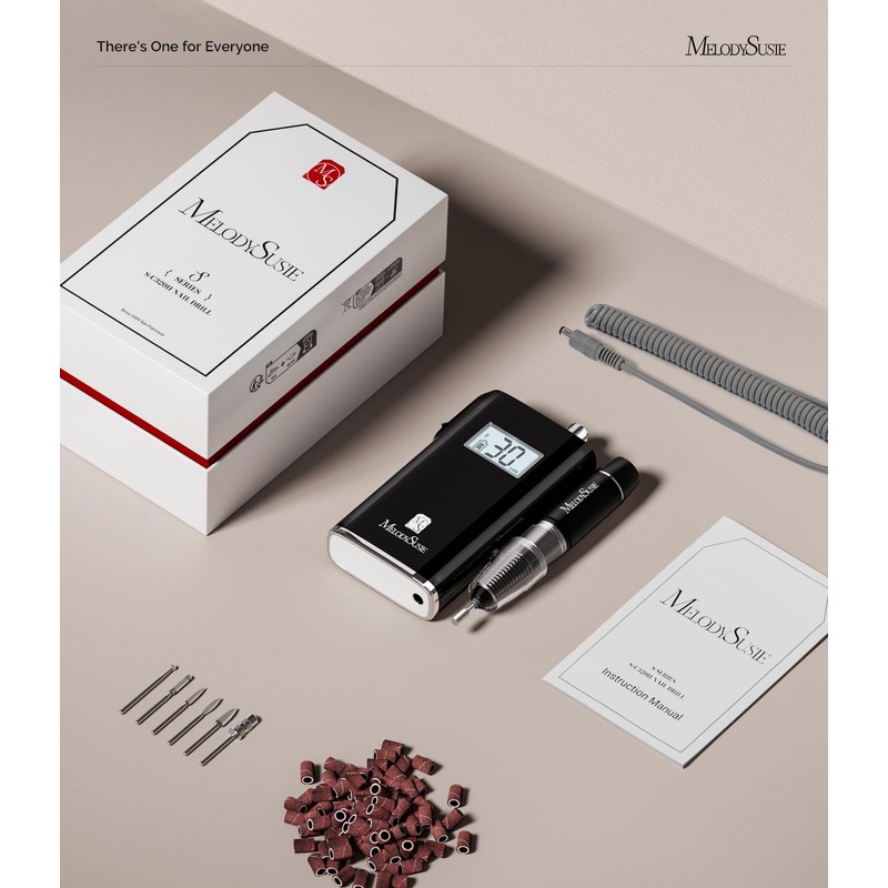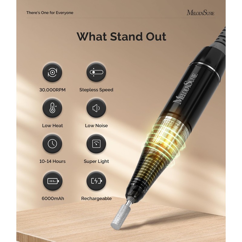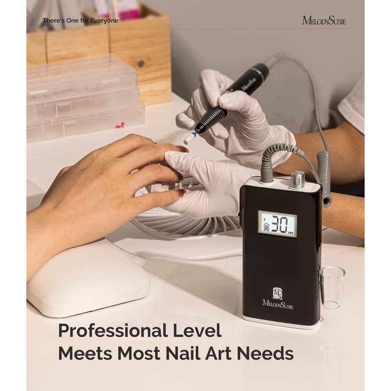 MelodySusie Professional Rechargeable 30000 RPM Nail Drill,SC320H Portable Electric E File Scamander, Acrylic Gel Grinder Tools with 6 Bits and Sanding Bands for Manicure Pedicure Carve Polish(Black)