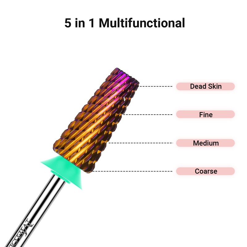 MelodySusie Professional 5 in 1 Nail Drill Bits, 3/32'' Carbide Tungsten Multi-function Bits, Suitable for Manicure Pedicure Cuticle Gel Polishing, Technicians Bits, Purple, Series Bit-M, Coarse