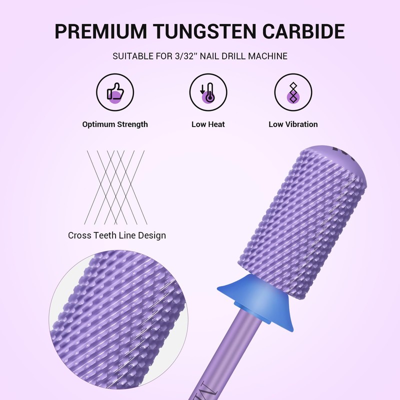 • Large Barrel Smooth Top Carbide Nail Drill Bits | Cross Cut | Color: Purple | Grit:Medium| Shank Size: 3/32'' | Two-Way Rotation.