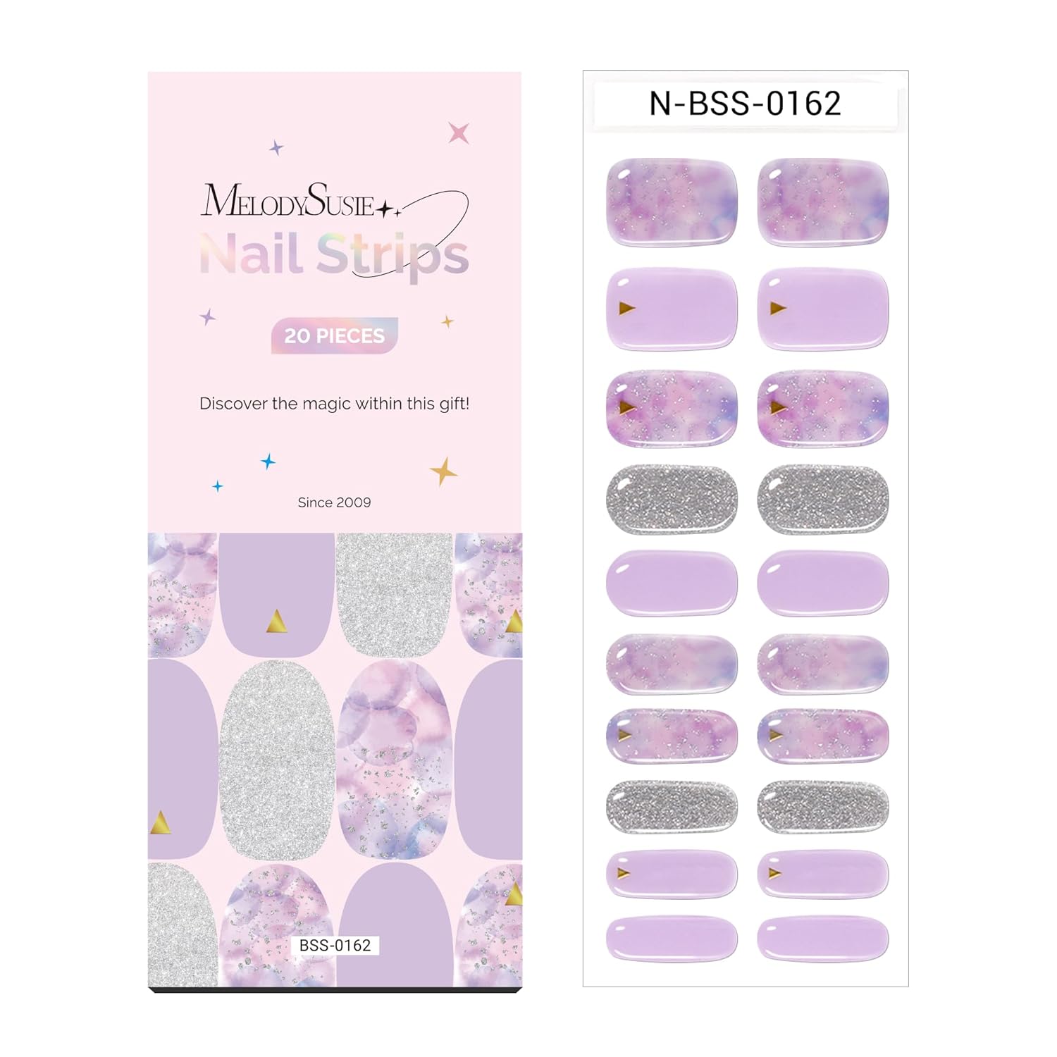 MelodySusie Semi Cured Gel Nail Strips (Dreamy Purple), 20 PCS Dreamy Purple