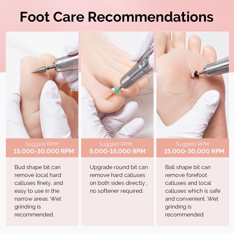 - Upgrade Round Bit: Remove hard calluses on both sides directly , no softener required. Suggest RPM: 5,000-15,000 RPM. Professional pedicure bit for callus and chiropody treatment.