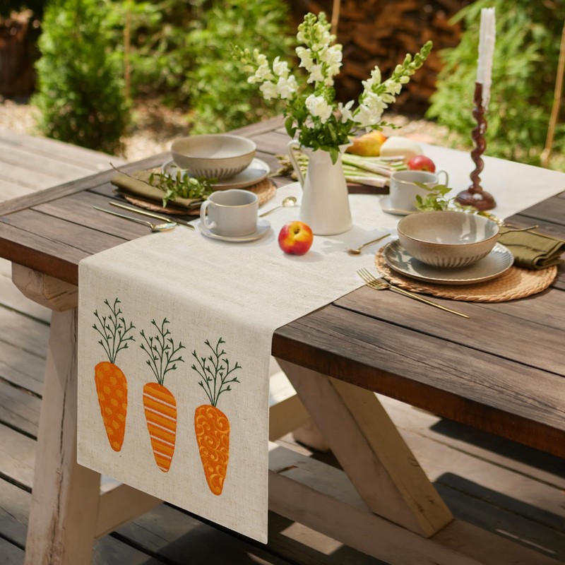 • PREMIUM MATERIAL: Crafted from a high-quality linen material, this 72-inch rustic Easter table runner with three embroidered carrots, offers a rustic, delicate embroidery texture that's both durable and elegant, perfect for everyday use and special occasions.