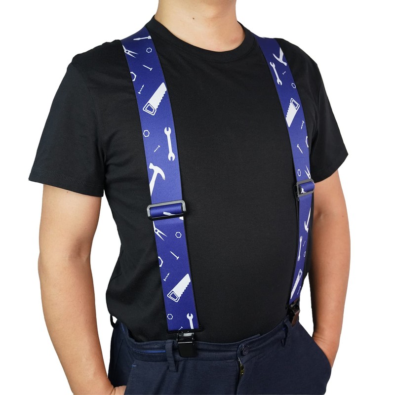 MELOTOUGH Men's Suspenders Fully Elastic 2 inch Wide X back Heavy Duty Work Suspenders (Blue Hand Tools)