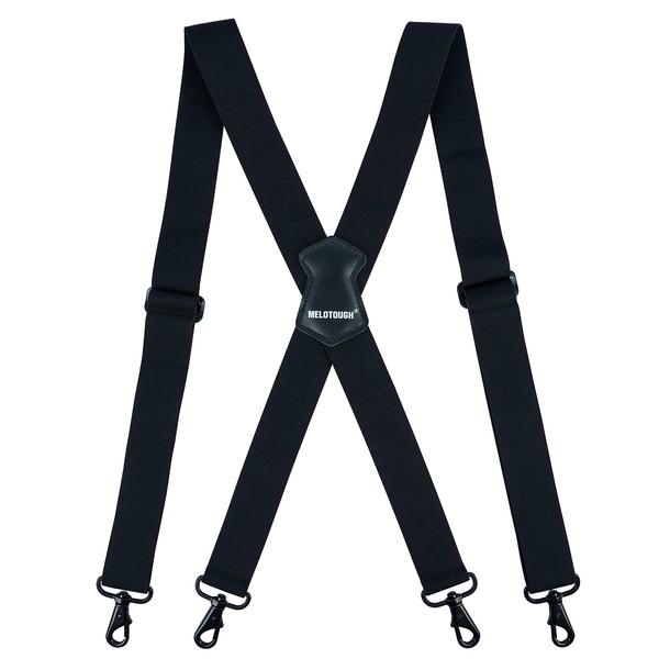 MELOTOUGH Mens Suspender 1.5 Inch Wide X Back Suspenders Black Adjustable Elastic Suspenders Braces with Heavy Duty Snap Hooks
