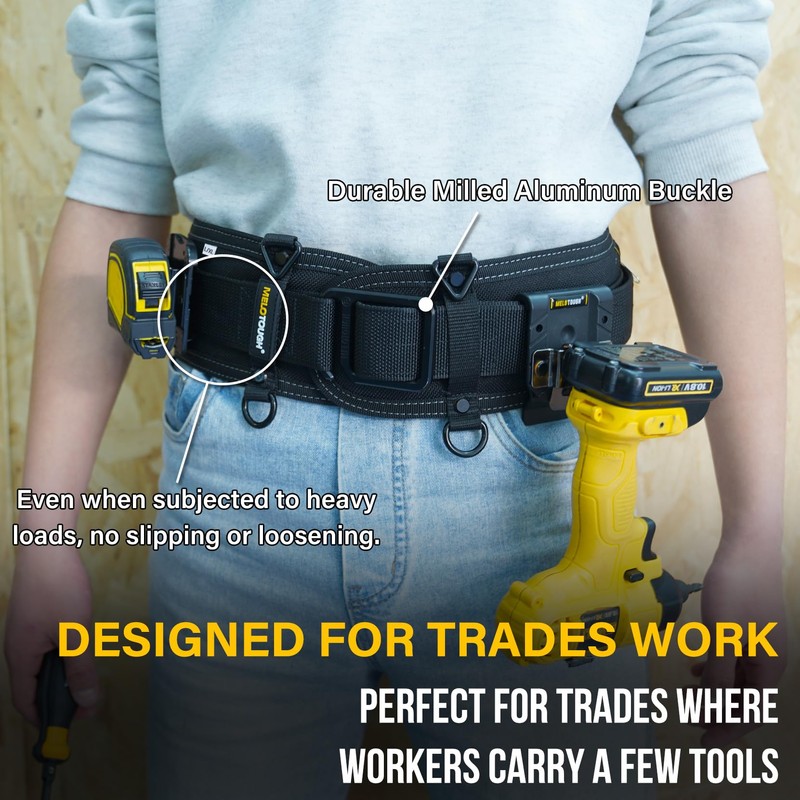 MELOTOUGH Padded Tool Belt Work Tool Belt for Heavy Duty Work,Tool Belt with Back Support Adjustable Waist(SM), Black & Yellow, Large