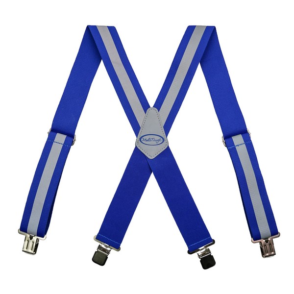 MELOTOUGH Reflective Safety Suspenders|Work Suspenders with Hi Vis Reflective Strip Hold Up Tool Belt Suspenders(X Back Blue Reflective)