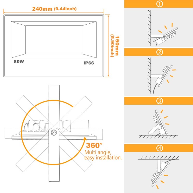 80W LED flood light outdoor x 2