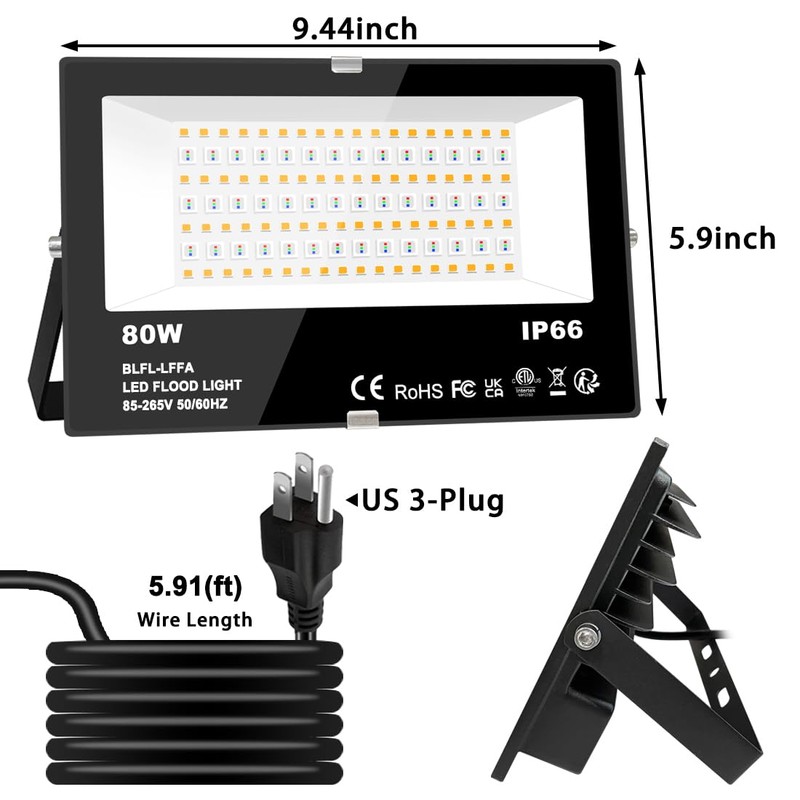 - Smart Bluetooth flood lights outdoor/indoor MELPO Led flood light with APP control: 80W, 800W Equivalent Warm White (2700K), CRI>85, 8000LM; 16 million multicolor colors and 23 dynamic modes, include 'DIY Flash' mode, and ' DIY fade' mode, group control, single controltiming function, strobe, DIY scenes. Suitable for daily, mood and decorative lighting. Such as you can use it as landscape lighting, stage lights, spotlight, strobe lights, accent lighting, background lights, security lights. No registration nor internet required.
