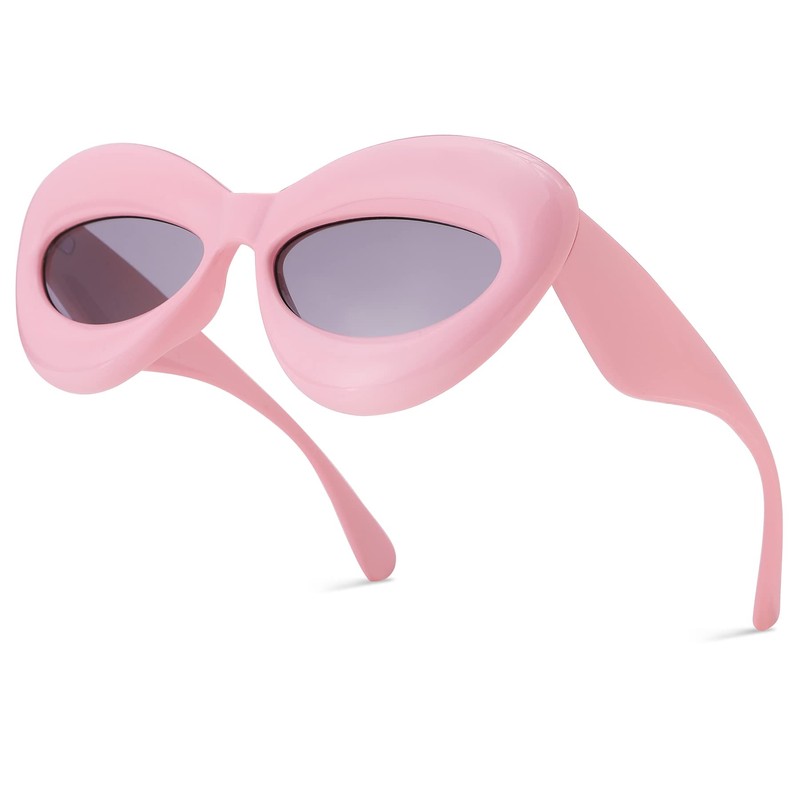 Melpomenia Trendy Lip Y2k Sunglasses for Women Men Fashion Cat Eye Punk Hip Hop Shades (Pink/Grey)
